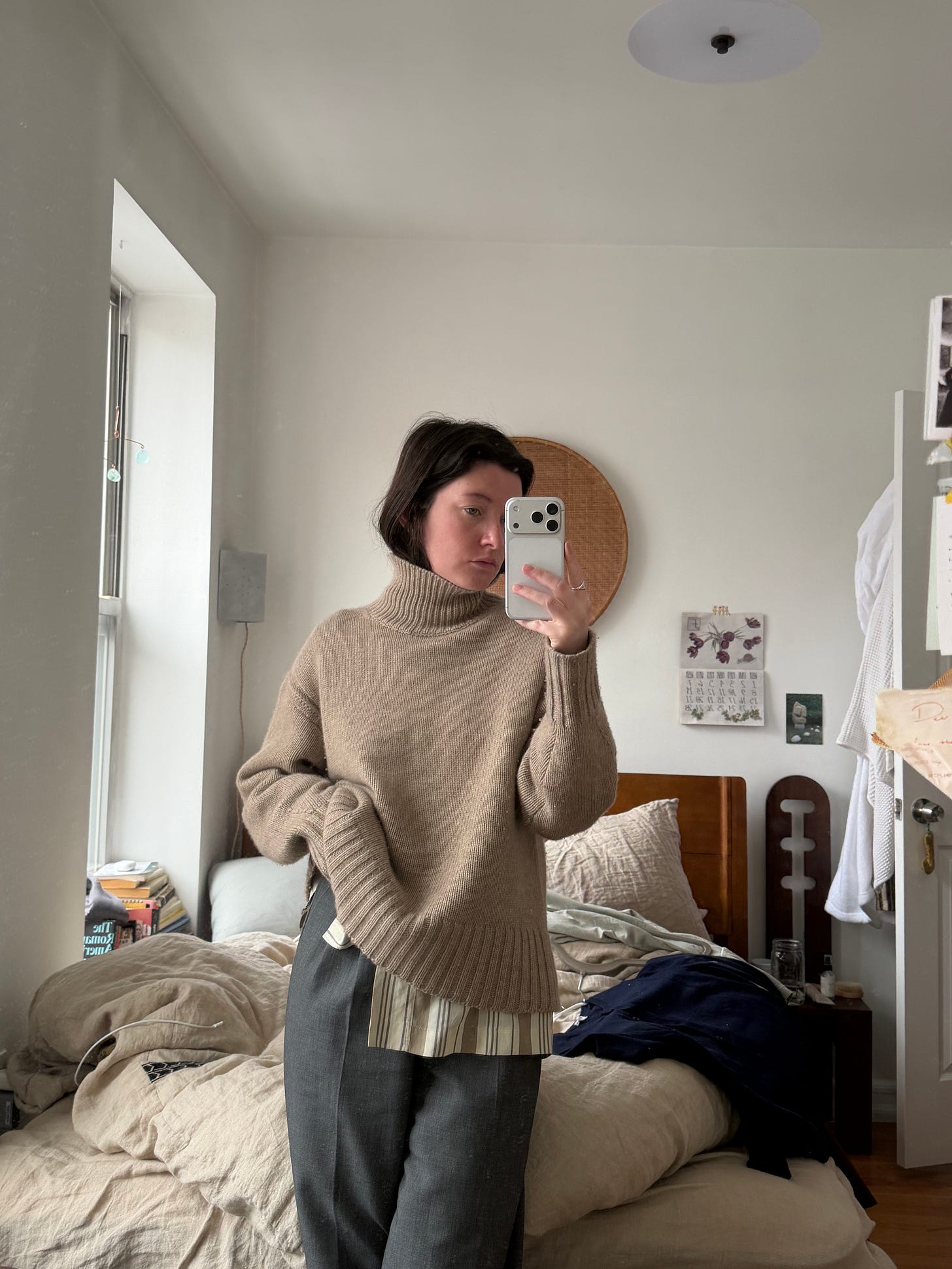 I got cyberbullied by my friends this weekend for affiliate linking a $745 sweater I wear every day and also got for free. Tbh I have amazing friends. Alternatively, this Nili Lotan does the same effect for $144, Theory accomplishes the silhouette for $231, and even Everlane is charging $238. Minimum wage is $17/hour in New York, by the way, so it would only take a person 14 hours to buy a turtleneck sweater from Everlane, except that minimum wage is also taxed at 20% here. So anyway here’s the sweater: