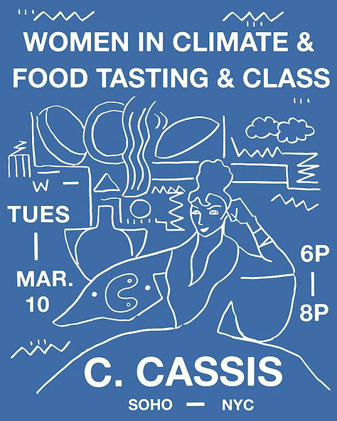 C. Cassis is hosting a Women In Climate event with a tasting and a lecture on sustainable sourcing and circularity on March 10. Just 14 spots left! RSVP here.
